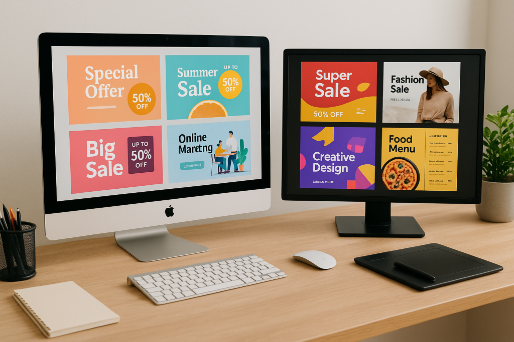 Custom flyers, posters, brochures, and digital ads crafted to attract attention and promote your business across all platforms.